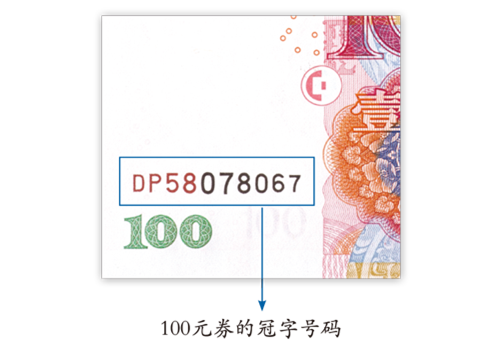 第五套人民幣紙幣的正面左下角,印有一串由字母和數字組成的號碼,這就是冠字號碼。每張紙幣的冠字號碼都是唯一的。